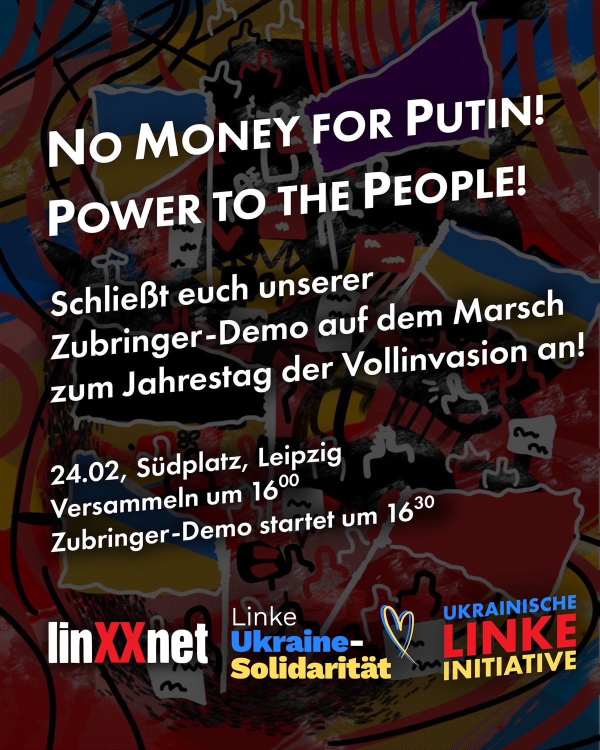 Linke Ukraine-Solidarität auf die Straße: No money for Putin, power to the people!